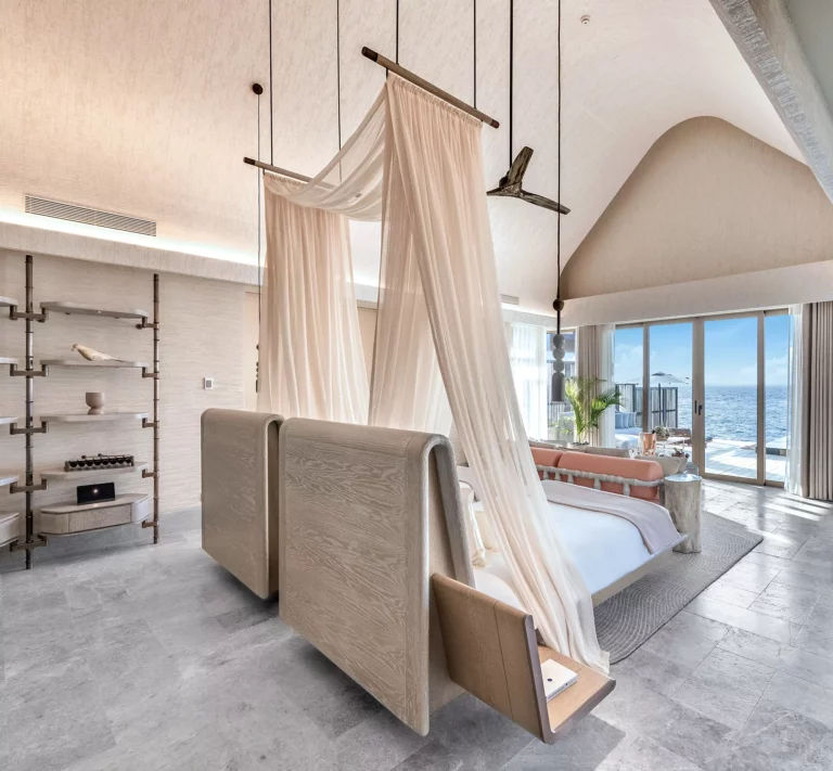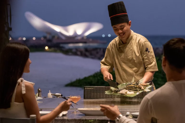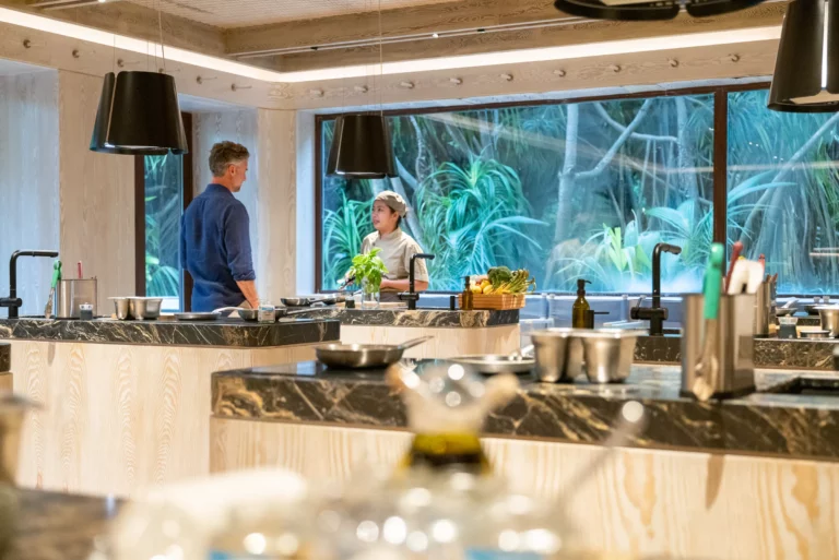 FLOW offers open-plan dining with three kitchens: Su for ocean-to-table pescatarian, Plantae for nourishing vegetarian and vegan, and B’Well for JOALI BEING’s signature meat and poultry.